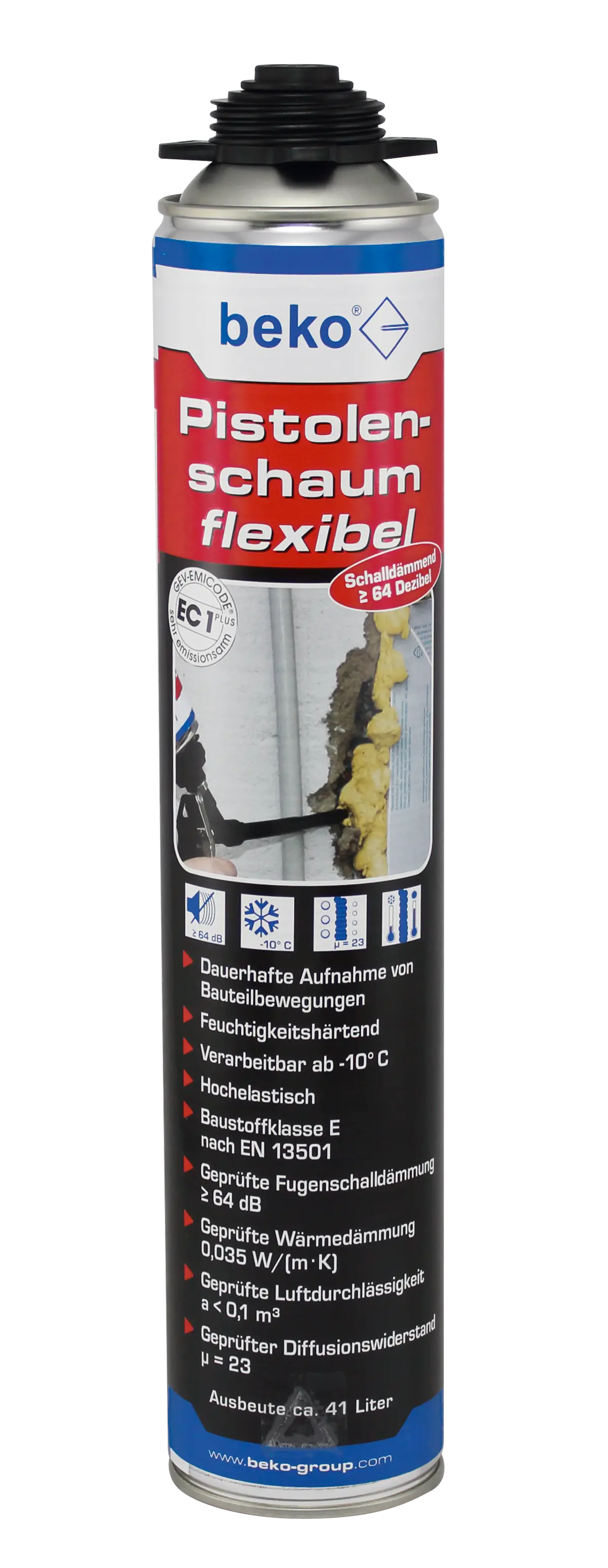 Dauerhafte Aufnahme von Bauteilbewegungen, Baustoffklasse DIN 4102 B2, geprüfte Fugenschalldämmung ≥ 63 dB, geprüfte Wärmedämmung = 0,033 W/mK, geprüfte Luftdurchlässigkeit a < 0,1 m³, geprüfter Diffusionswiderstand μ = 8, Ausbeute ca. 44 Liter, feinporige Zellstruktur, GEV-EMICODE® EC 1Plus – sehr emissionsarm, für RAL-Montage geeignet.