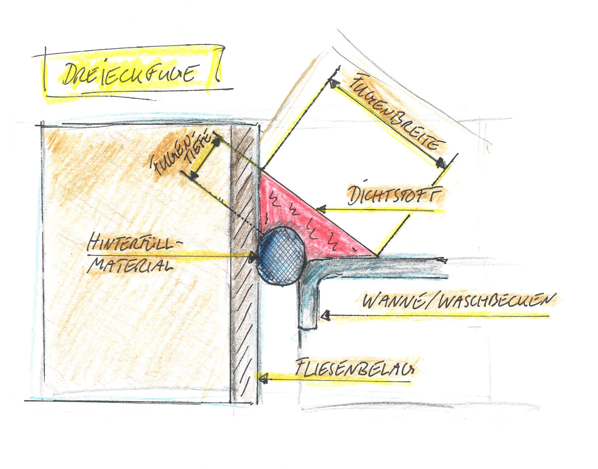 Diese unterschiedlichen Fugenarten sind auch bezüglich Dichtstoff und Hinterfüllung unterschiedlich zu behandeln.